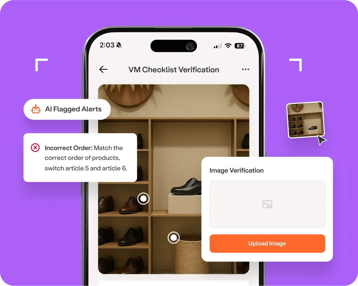 Upload a reference image. AI compares every store photo and flags compliance mismatches instantly.